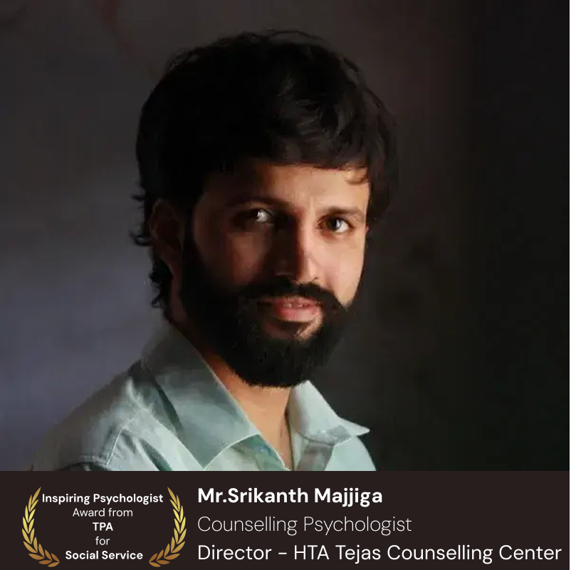 Mr. Srikanth Majjiga is a highly experienced Counselling Psychologist and Psychotherapist with over 8 years of practice in individual, family, and group counseling. He specializes in CBT, EMDR, DBT, REBT, NLP, Solution-Focused, and Mindfulness Therapies, helping clients overcome challenges like anxiety, depression, relationship issues, anger, self-esteem, and adolescent concerns.
